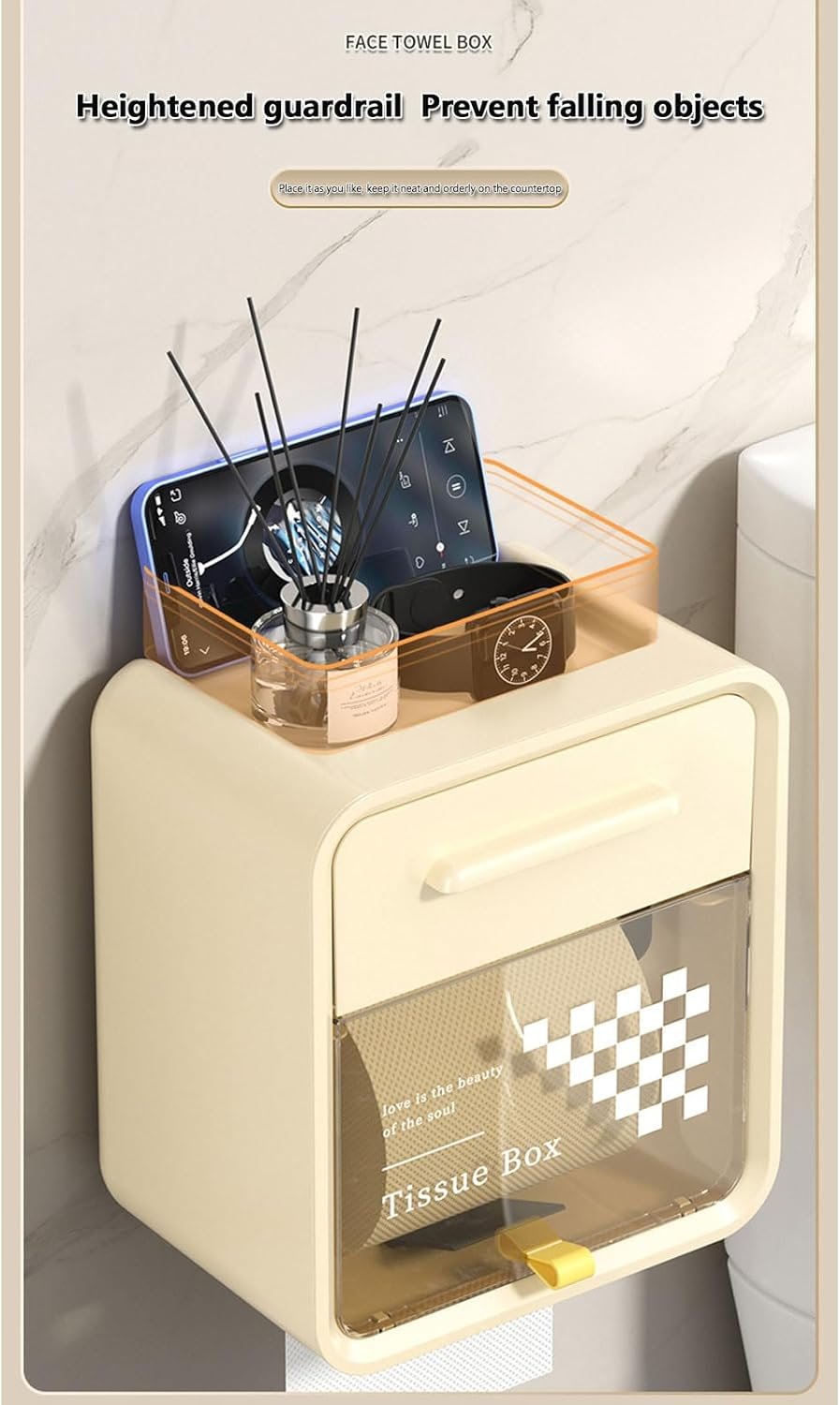 Plateau supérieur pour poser un spray, des lingettes ou même un téléphone